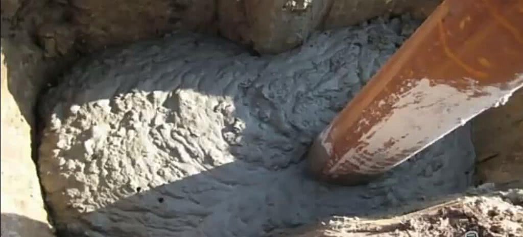 Если вы столкнулись с проблемой грунтовых вод, то рыть траншею или бурить яму нужно глубже, т.е. ниже относительно уровня залегания вод. При этом вам понадобится подготовить значительно больший объем раствора.