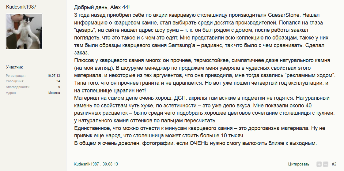 А вот один из реальных отзывов о таких поверхностях: