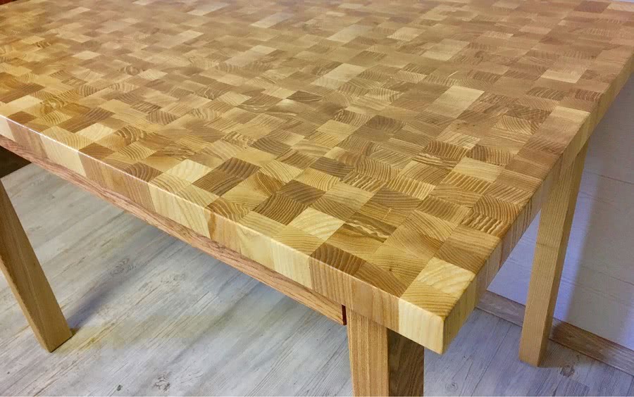 Приступить к работе можно после подбора брусков необходимого размера из твердых сортов дерева (бук, дуб). Материал для будущей рабочей поверхности должен быть высушенным до столярной влажности, для избежания коробления в будущем.