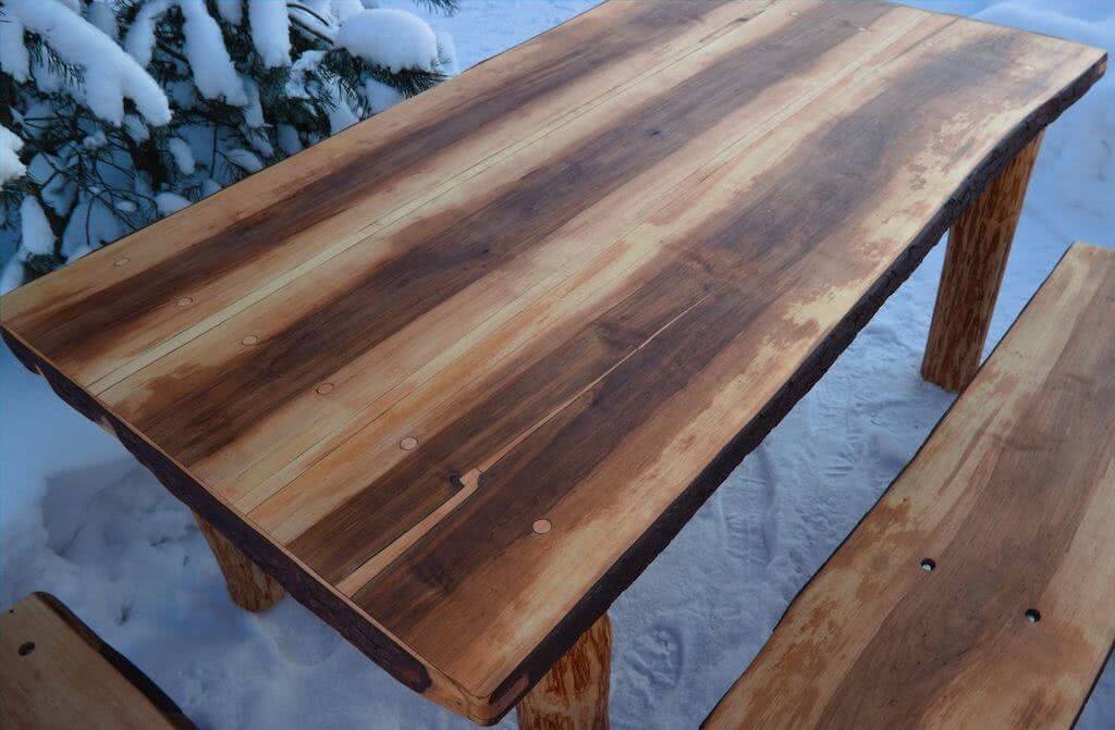 Не меньшей популярностью пользуется сибирская лиственница и конский каштан. Столешницу лучше выполнять из сосны, ореха или венге, подставки — из акации, березы либо самшита.