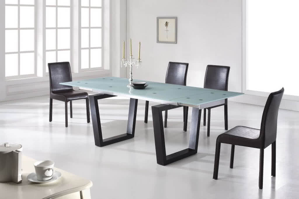 Наиболее часто в кухонном интерьере можно встретить классический стол прямоугольной формы. Широкая столешница крепится на каркас и четыре опорных ножки.