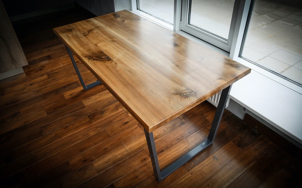Наилучший материал для самостоятельного выполнения стола на кухню — это дуб — высокопрочный, долговечный, не подвергающийся деформации и воздействию влаги материал. Его просто обрабатывать и лакировать.