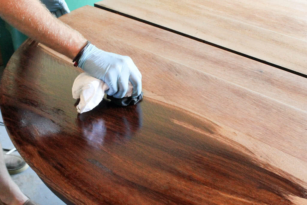 - хорошо отшлифовав, натираем плоскость столешницы, придавая ей глянцевый блеск.