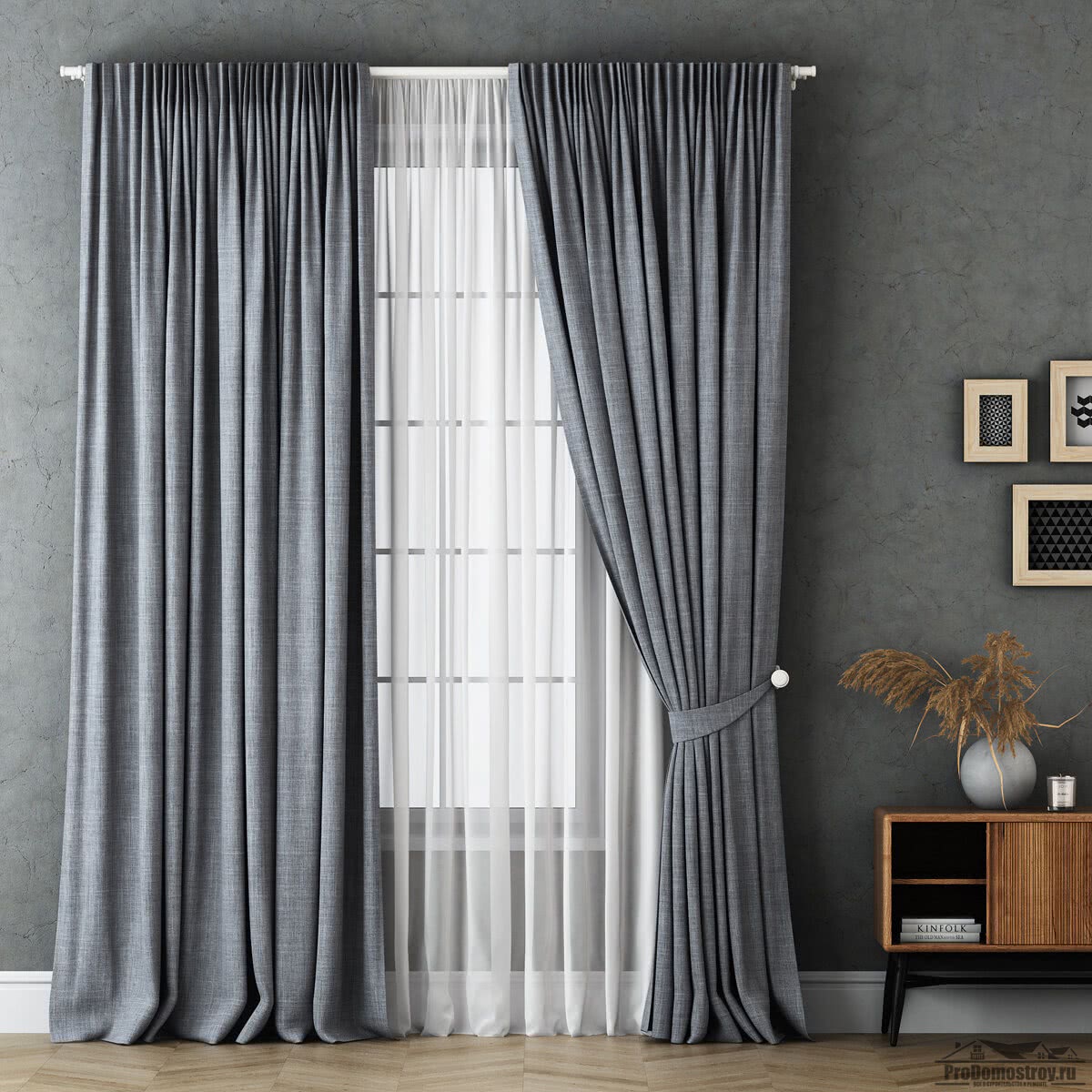 Серые обои сочетаются со шторами многих цветов. При подборе смотрят на теплоту и насыщенность. Учитывается и назначение комнаты. Занавески помогают создать нужную атмосферу: рабочую, расслабляющую или настраивающую на приём пищи