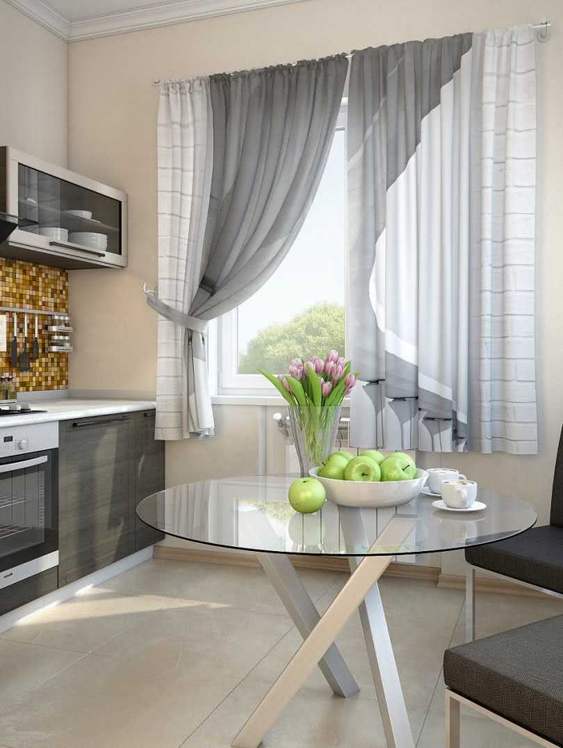 Шторы для маленькой кухни выбирают по следующим показателям: