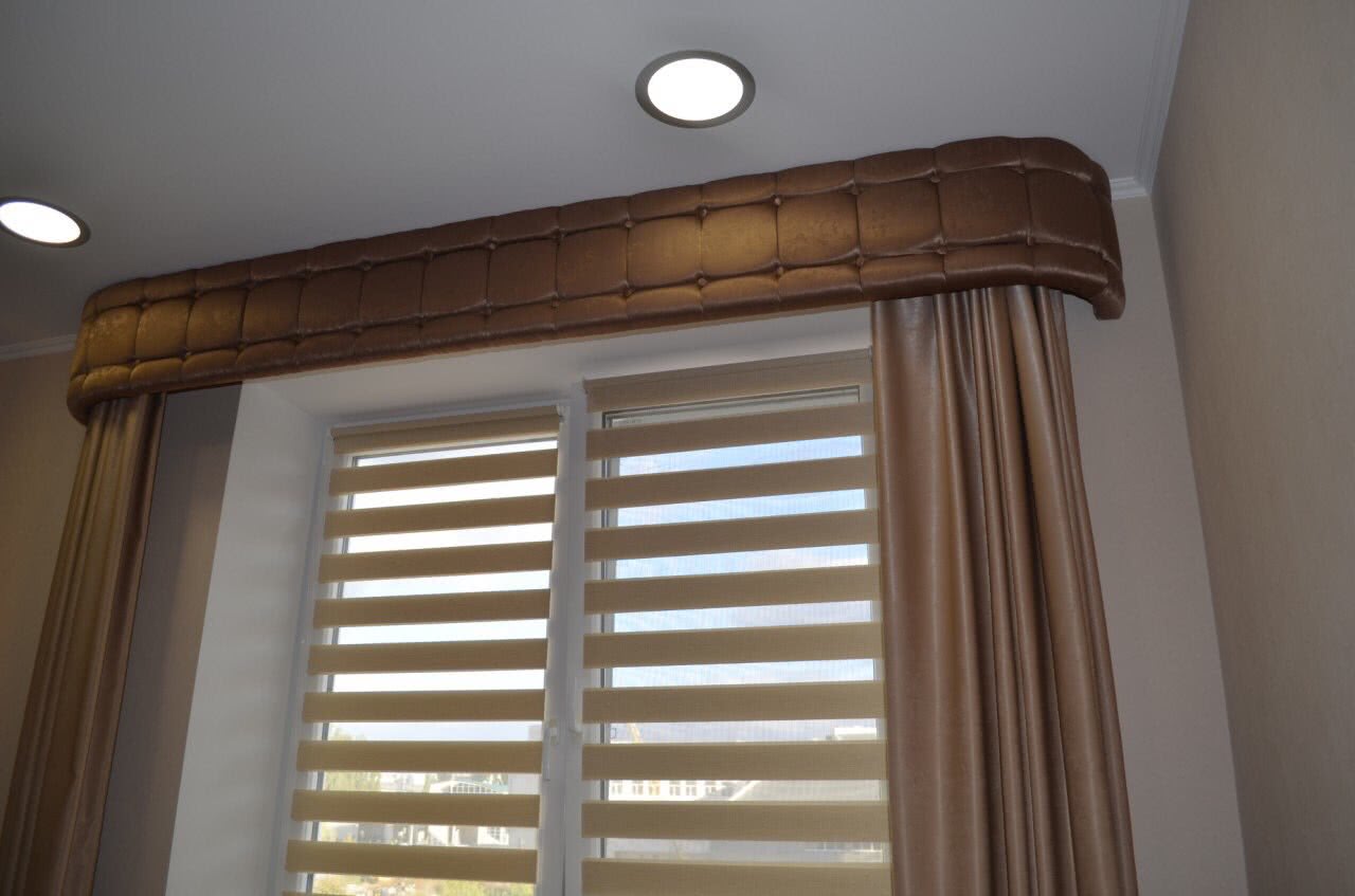 Можно дополнить легкие прозрачные гардины ламбрекеном или скомбинировать несколько вариантов.