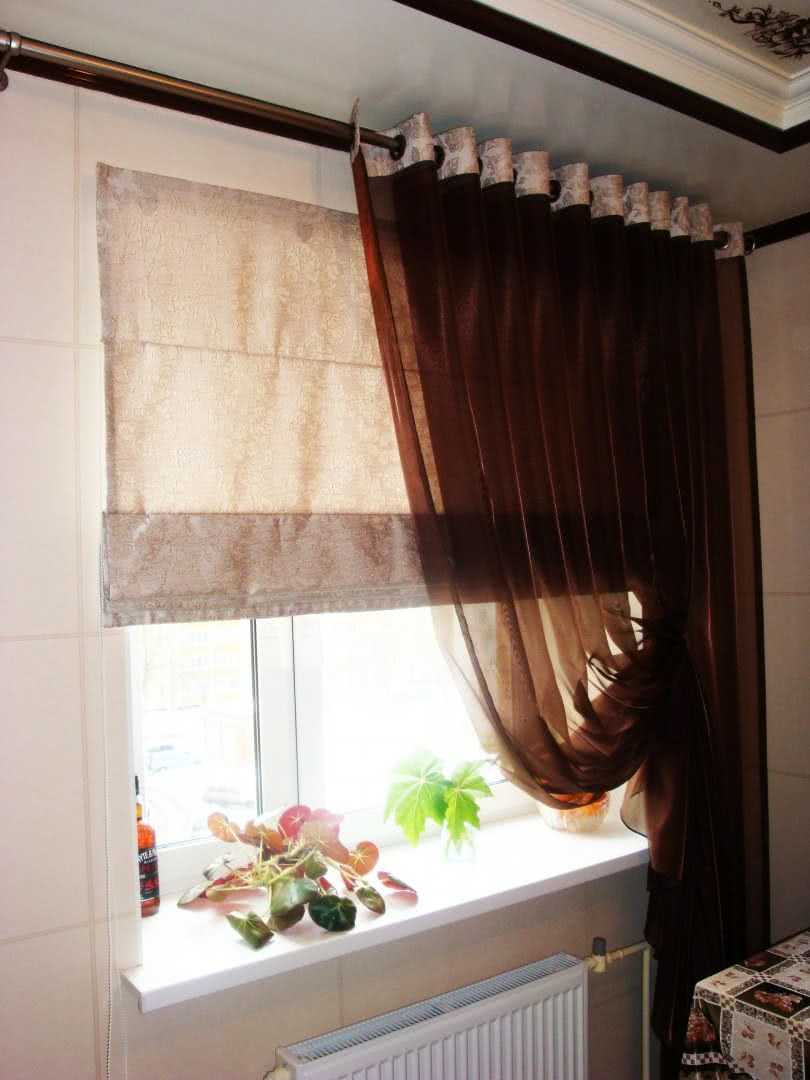 Рулонные шторы можно сочетать с другими вариантами занавесок.