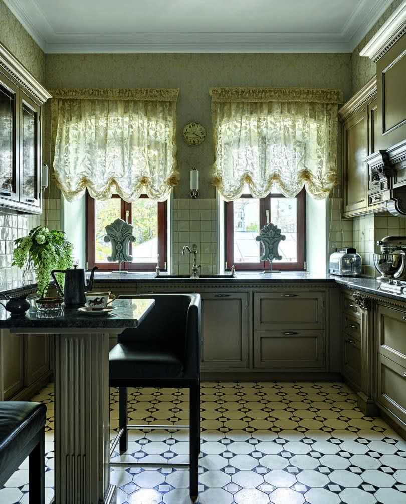 - Длинные. Такие занавески предпочтительнее в более просторных кухнях, в которых окна не соседствуют с плитой, или же в обеденной зоне кухни, вдали от зоны приготовления пищи. Во время приготовления пищи часто открывается окно, и порывом ветра длинные шторы могут попасть на горячую конфорку, что может повлечь неприятные последствия. Кроме того, длинные шторы требуют больше трудовых усилий при стирке