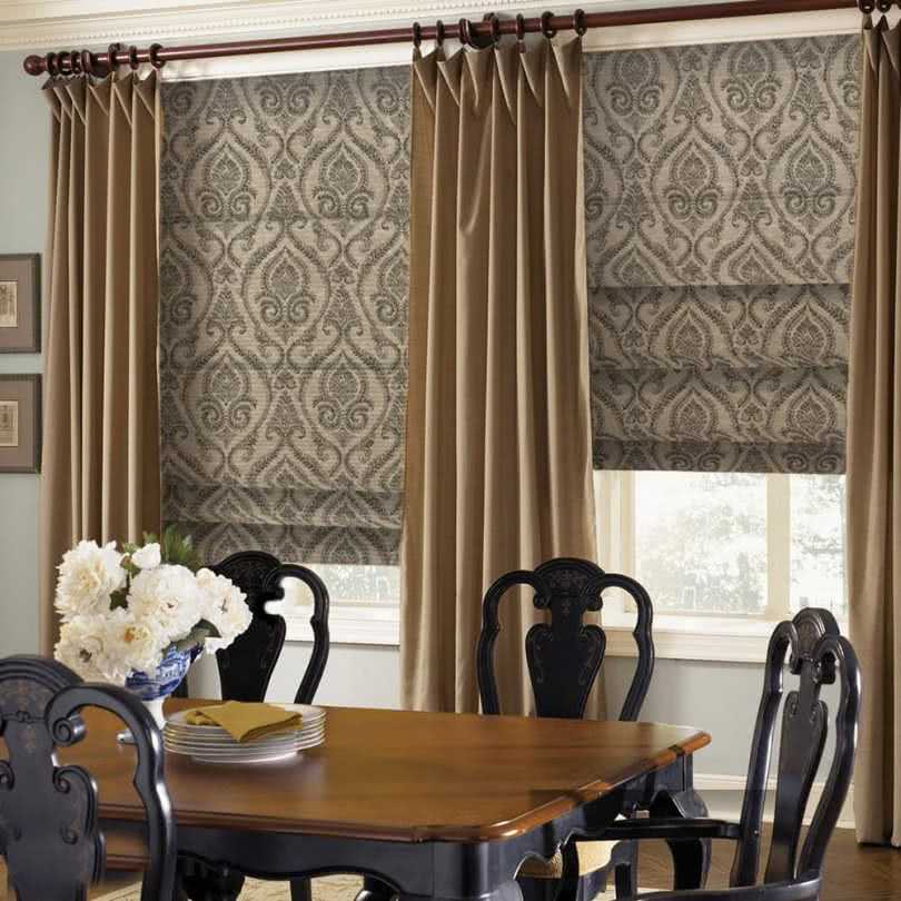 Римские шторы будут отлично смотреться практически в любом стиле. Они придадут вашему окну простоту и лаконичность, что является основными тенденциями этого года. Их можно сочетать с тюлем, вертикальными жалюзи, портьерами. Также стало модным поверх каркасной шторы вывешивать бескаркасную. Воланы, собирающиеся внизу бескаркасной шторы, разрядят чересчур строгий стиль занавеси на каркасе. В таком сочетании хорошо использовать ткани-компаньоны.