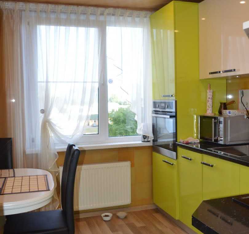 Расстановка мебели. Если плита или нагревательные приборы расположены близко к оконному проему, предпочитают натуральные виды тканей или рулонные шторы.