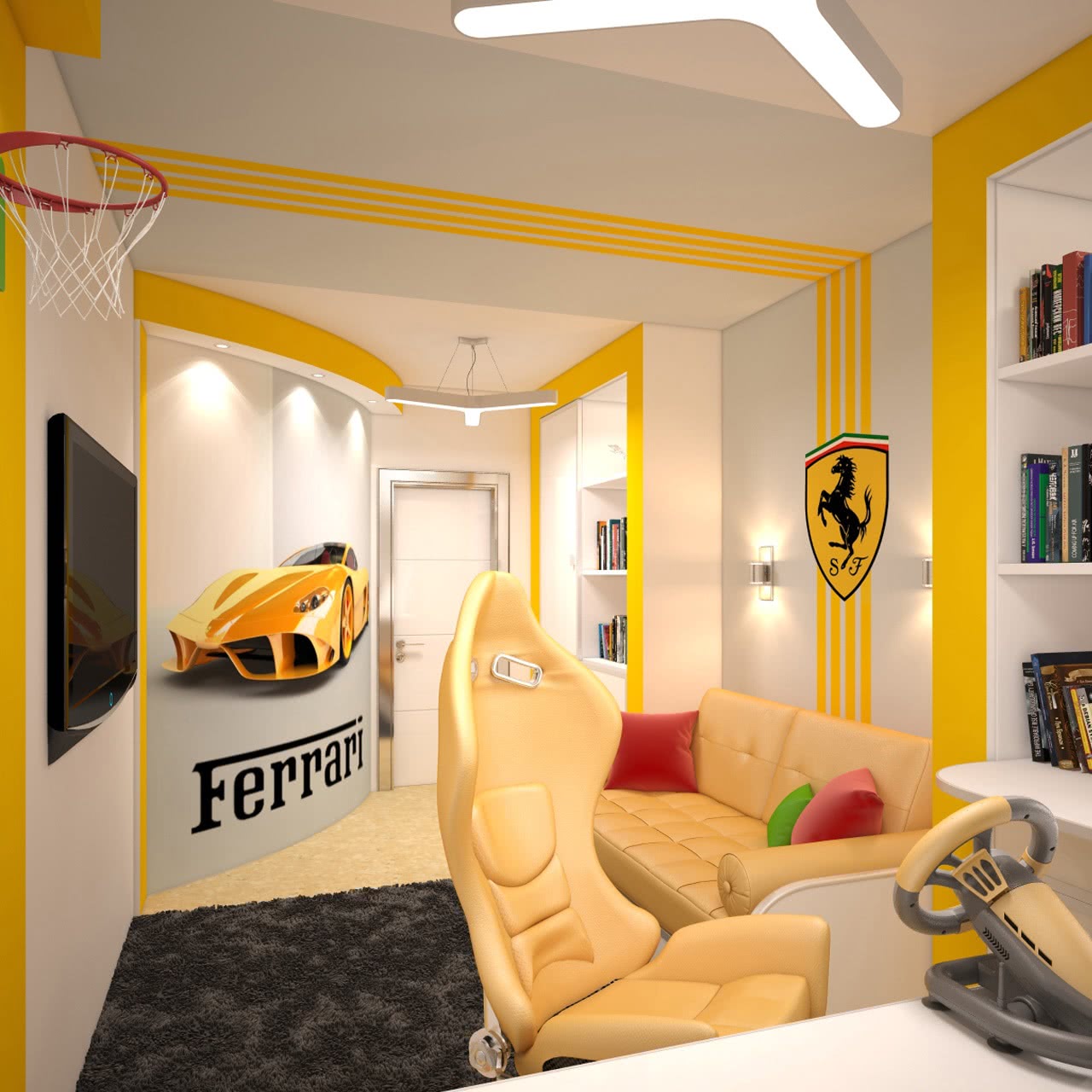 В декоре можно использовать мячи, сетки и выделить места под спортивные трофеи.