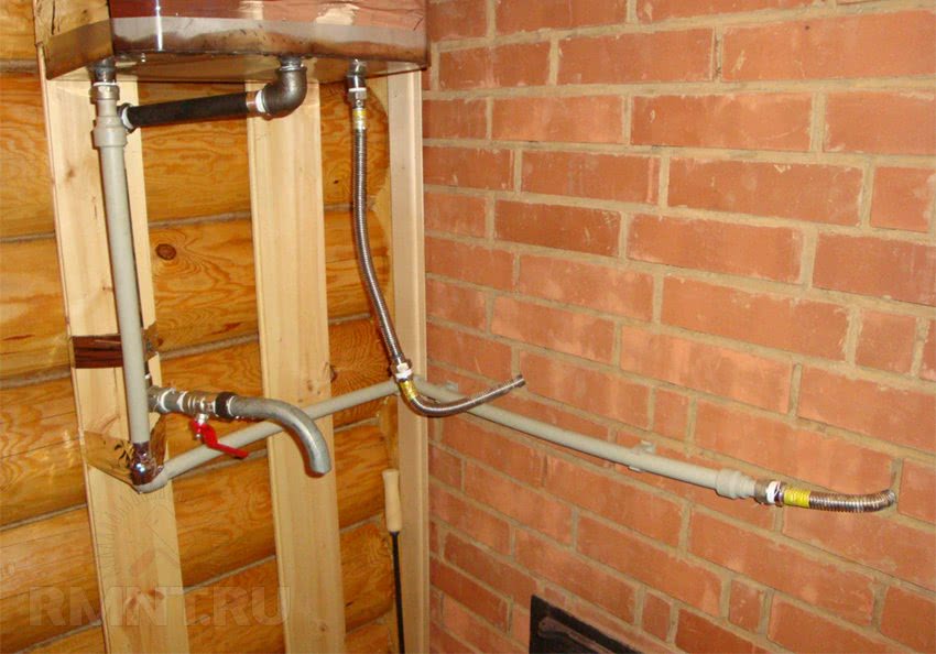 Для помывки одного пользователя бани требуется не менее 8 л горячей воды. Обеспечить такое количество можно несколькими способами: нагревать ёмкость с водой на каменке, использовать газовую колонку, установить электрический нагреватель — бойлер. Если имеется центральное водоснабжение, трубопровод к бане ведут от основного дома — воду из такой системы трубопровода нужно обязательно сливать в зимнее время, иначе она замёрзнет и разорвёт трубы.
