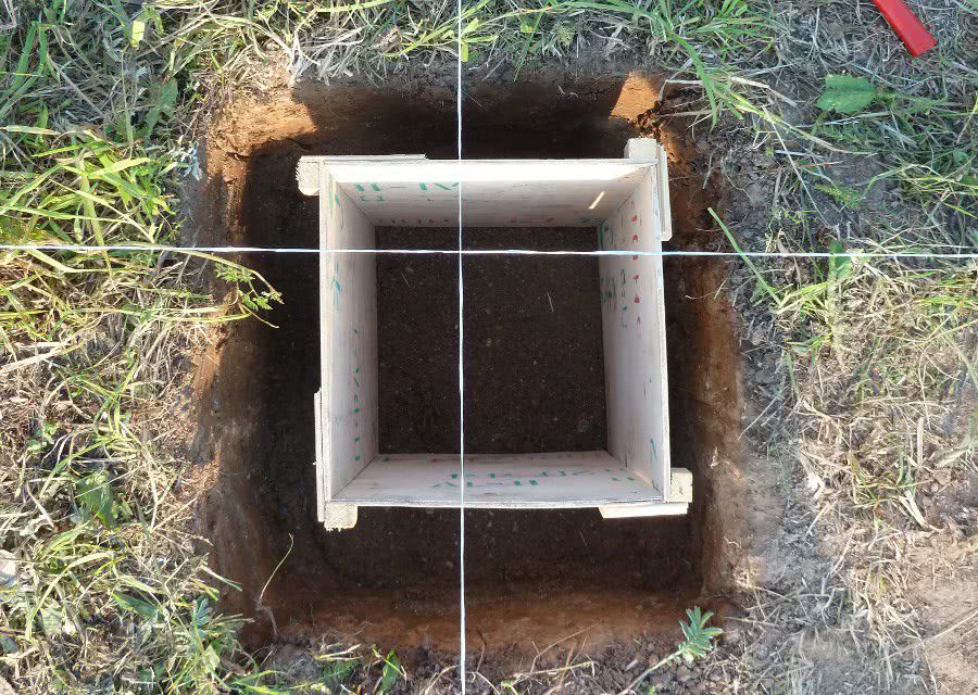 - Далее осуществляется монтаж опалубок для каждой ямки строго вертикально, края над землей выравнивают по горизонтали;