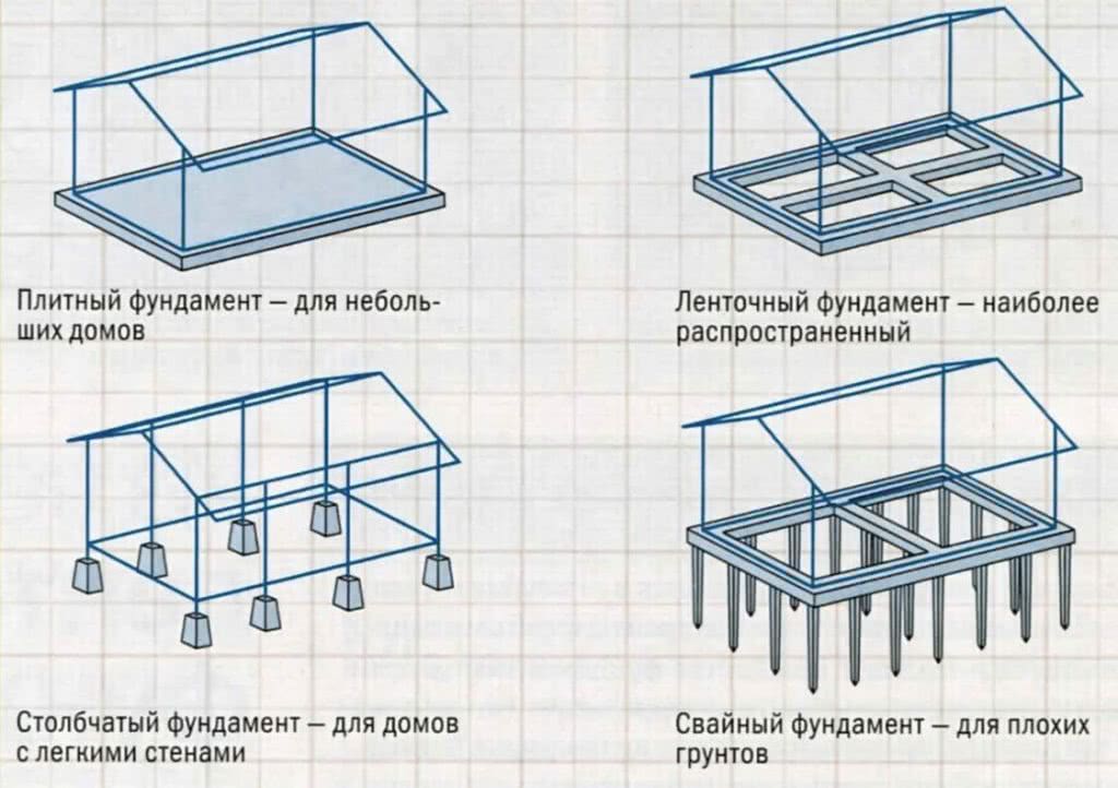 Вид фундамента, и в целом проекта, зависит от характера самого здания и сезонности проживания.