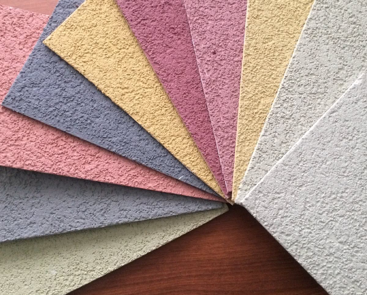 - Акриловые. Из соответствующих типов полимеров, с добавлением красителей, измельчённого мрамора или стекла, золы.