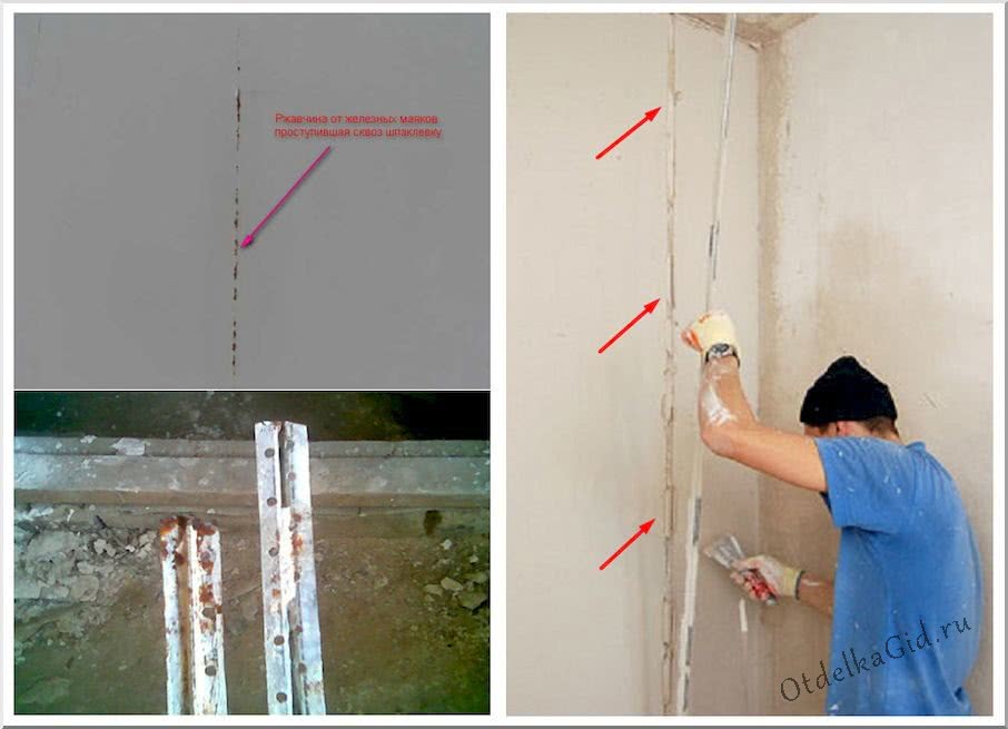 Если оцинкованный профиль оставить в стене, то он поржавеет, поэтому маяки нужно удалять, а борозды заделывать тем же штукатурным раствором