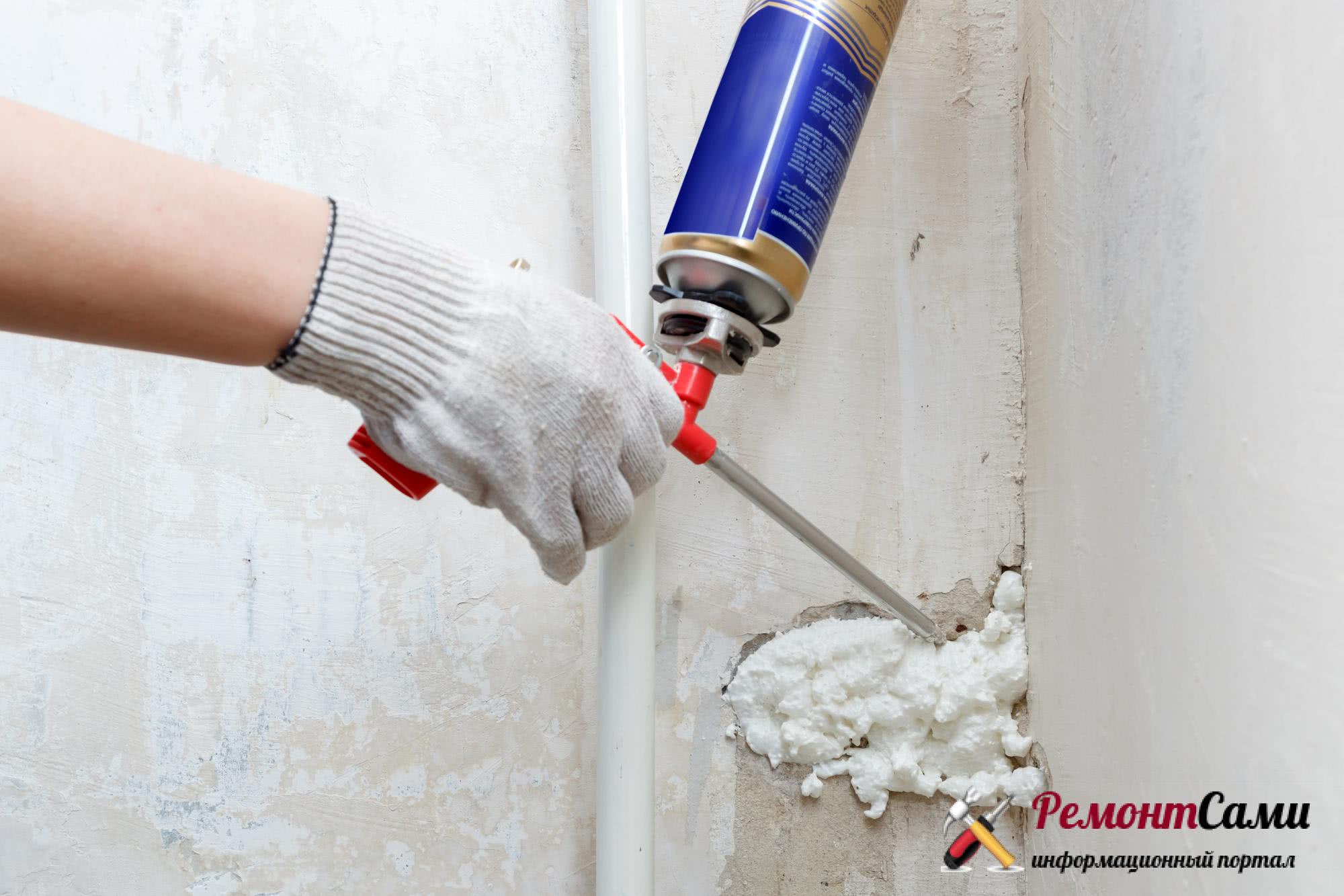 Третий вариант. Иногда выявляется трещина слишком широкая. Ее заполняют монтажной пеной. Здесь даже не потребуется дожидаться окончательного высыхания грунтовки.