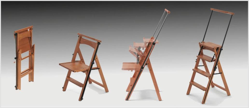 - Раскладными. Данный вариант отличается компактностью и удобством в использовании. На его изготовление уйдет немного больше сил и времени. Но в результате, у вас получится эстетичный стул, который при необходимости будет раскладываться в лестницу.