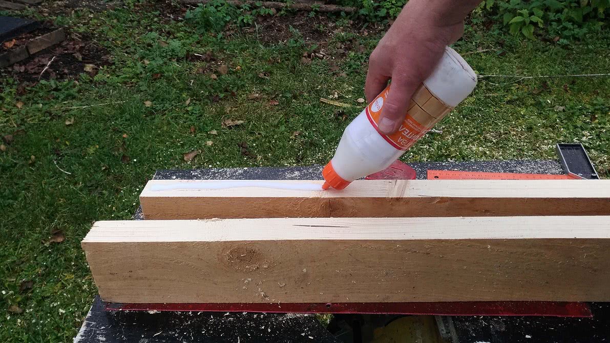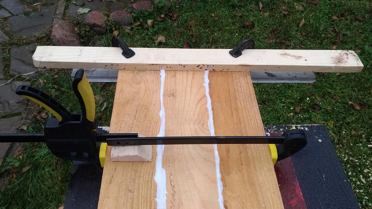 Можно использовать и любой другой столярный атмосферостойкий клей, например поливинилацетатный, но только проверенных брендов (Kiilto, Soudal, Titrbond,и др). А вот применять эпоксидную смолу не следует, потому что после полного отверждения она теряет эластичность — такой шов плохо противостоит изгибающим и динамическим нагрузкам. Склеивать рекомендуется при температуре выше +10оС, используя для сплачивания досок винтовые или рычажные струбцины.