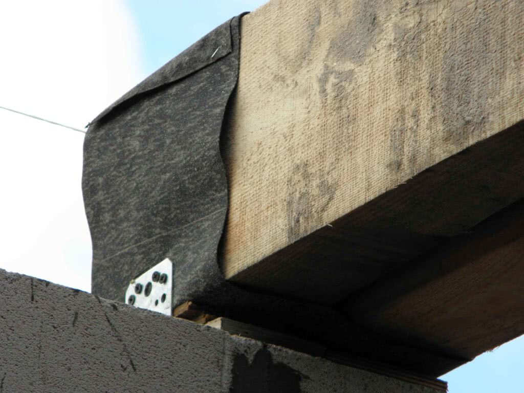 Несущие конструкции из дерева часто используются в качестве прокладки. Для идеальной изоляции звука это не очень хорошо. Ведь дерево само по себе является проводником звука. Тем более, если балки опираются на стены, которые принимают на себя и проводят шумы. Значительно снизить проходимость шумов по балкам между этажами можно. Для этого нужно изолировать балки от соприкосновения со стеной с помощью рубероида.