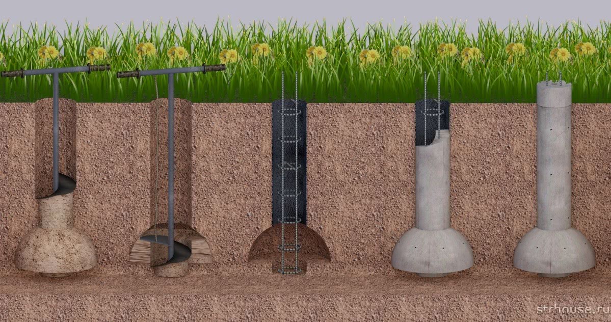 Поэтому в зависимости от характеристик свай и способа их установки различают некоторые разновидности фундамента.