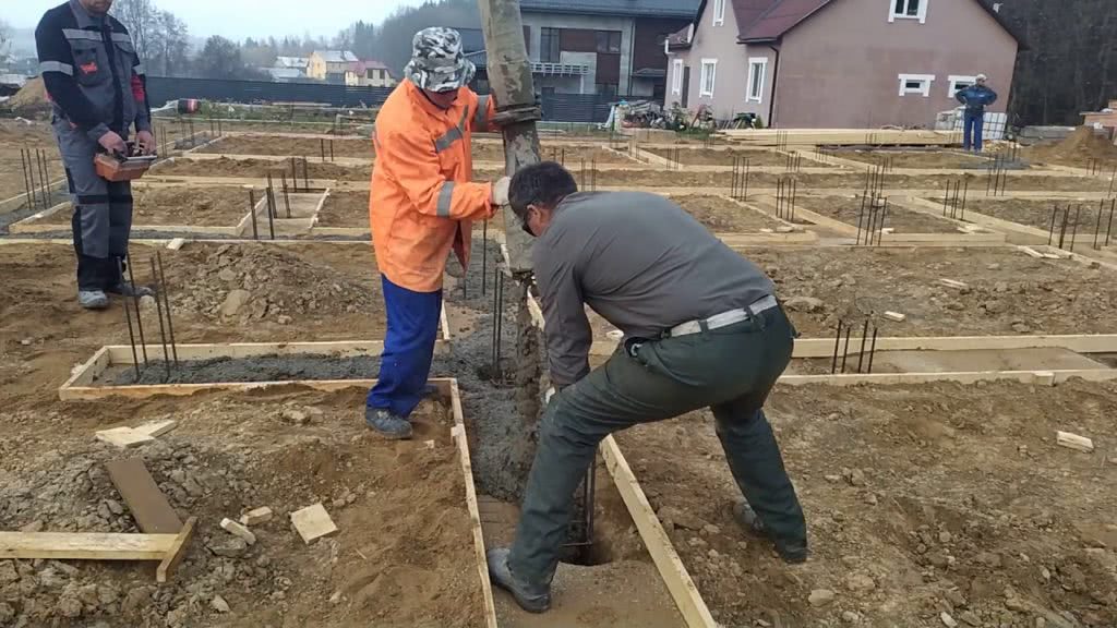 Соберите из железобетонных элементов. Залить монолитный скотч.Процесс завинчивания бурового полотна и перекачки жидкого бетона под давлением. Чтобы построить фундамент своими руками, лучше выбрать второй способ – монолитную сетку. Это значительно упростит задачу заливки бетона.