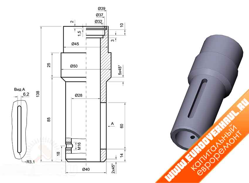| 2 | Ходовая втулка | Стальная труба Ø 28х3 мм |