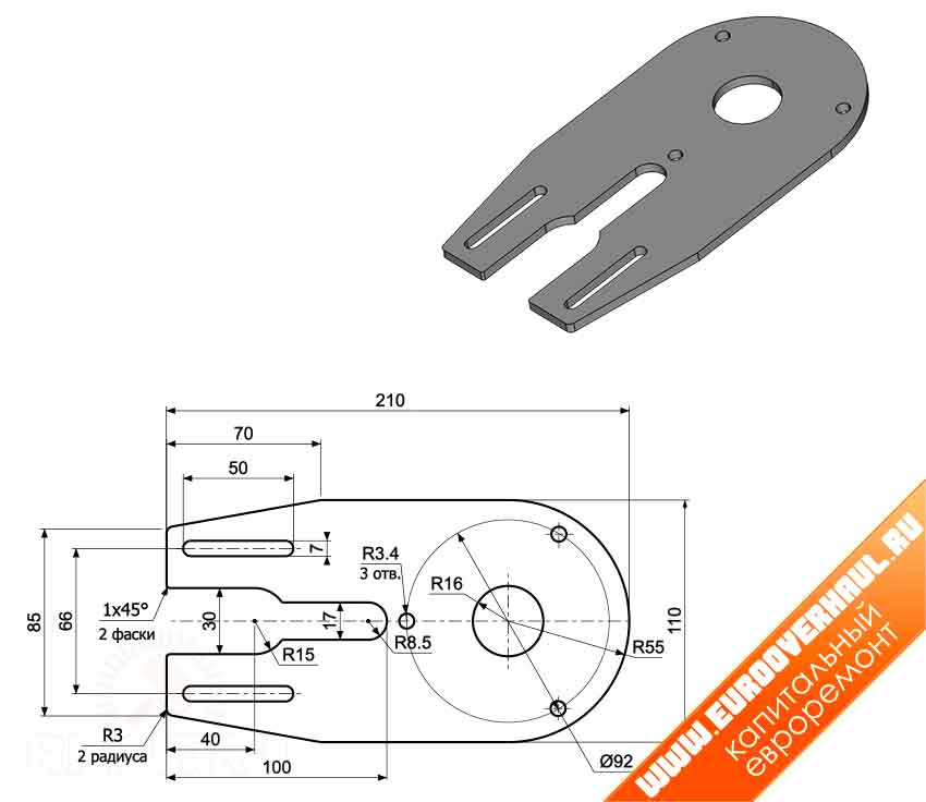 | 6 | Рычаг | Стальной лист δ 4 мм |