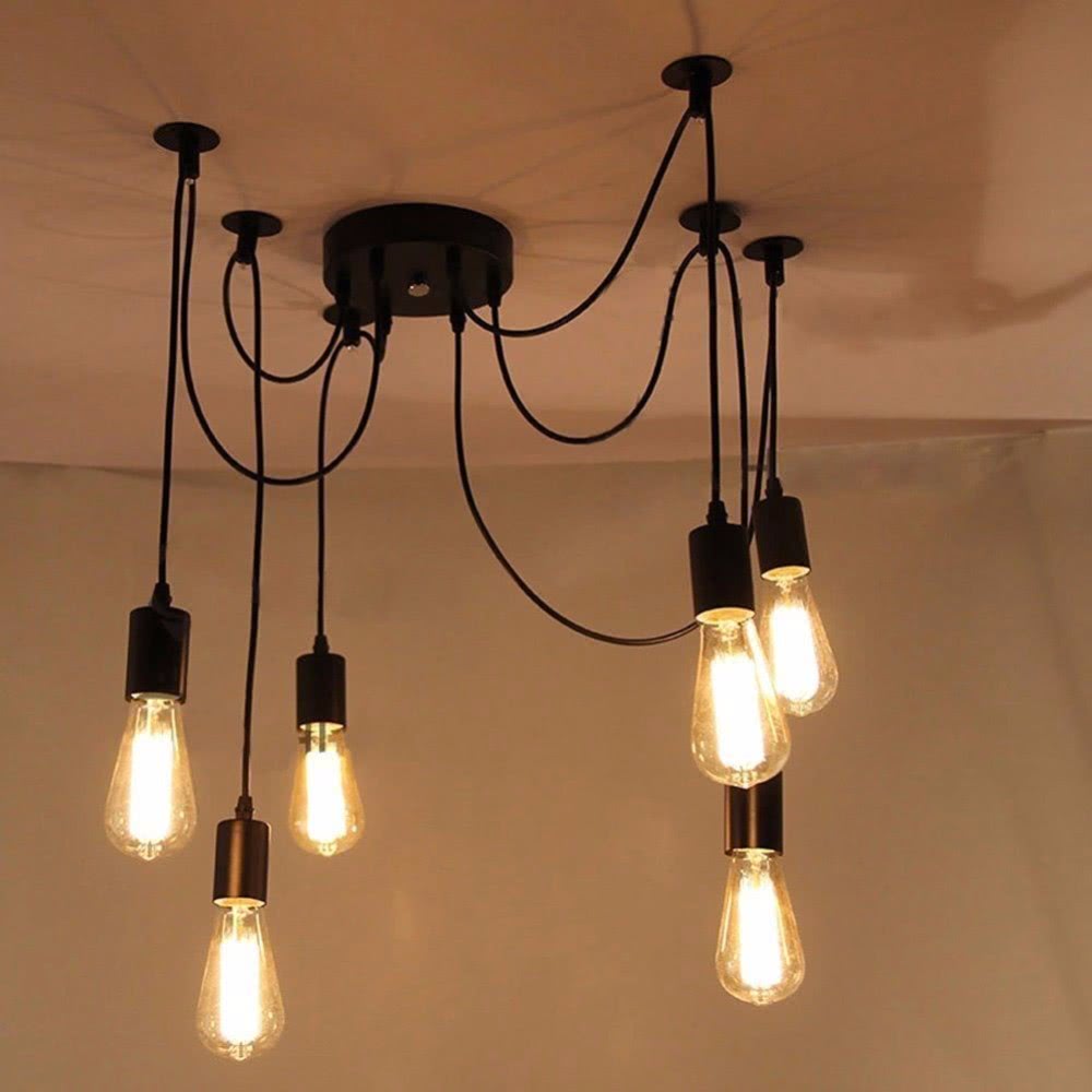 Название паук люстра получила благодаря своему нетривиальному внешнему виду. Из центрального крепления выходят многочисленные провода, которые венчают лампочки. Минимальное количество начинается с 6 штук, максимальное может достигать 16, но обычно останавливаются на варианте с 8 лампами, по количеству ножек у паука. Для интерьера выбирают люстры, где гибкий провод закреплен на потолке с помощью специального фиксатора или модели с жесткими «ножками». Штативы способны гнуться, и позволяют изменить направление света, что весьма удобно в любом интерьере.