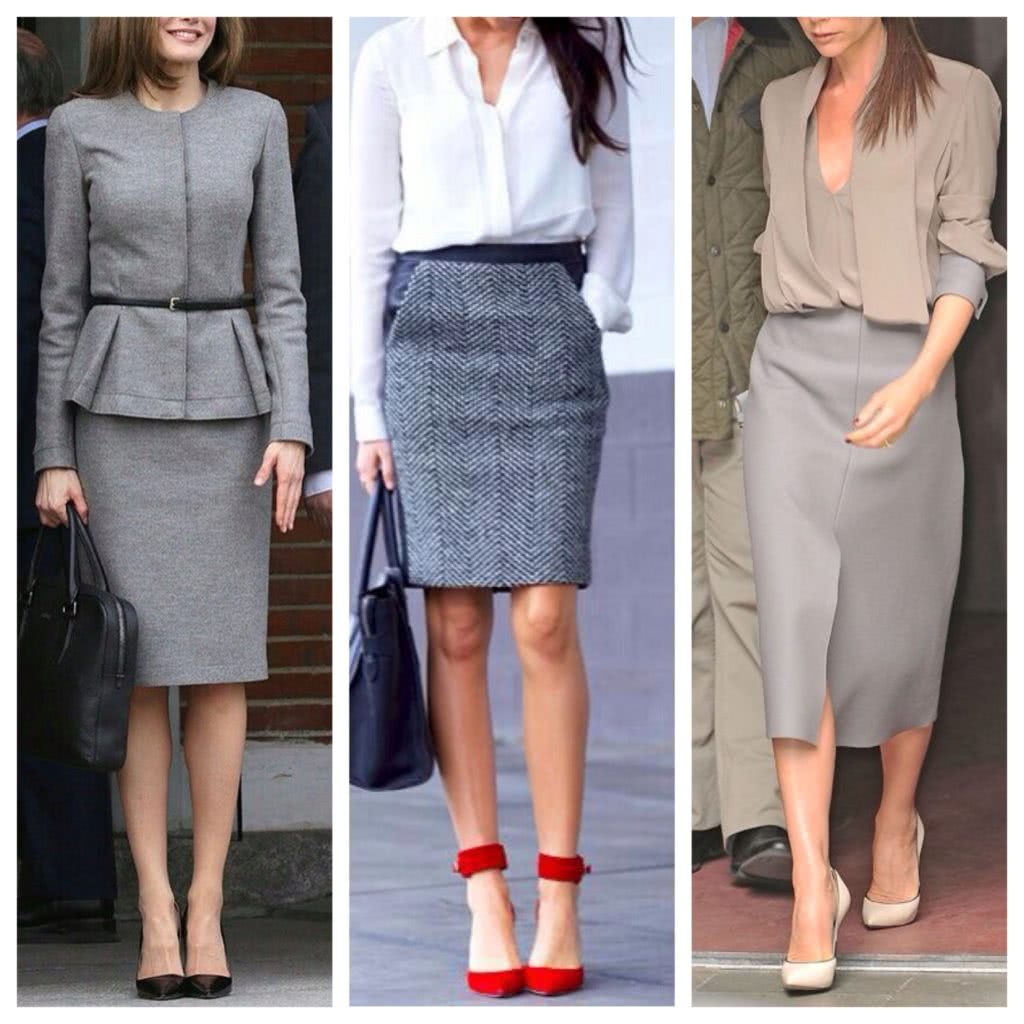 В теплое время хорошо будут смотреться платья на запах из шерсти, или свитера оттенков «опал», «лавандовый», «жемчужный», «вулканический» с юбками контрастных цветов: шоколадной, синей, светло-коричневой, тёмно-зеленой. Сочетание серого и красного тоже нередко применяется в офисных образах, однако, с этим нужно быть аккуратной, чтобы образ не получился пошлым: красный цвет лучше убрать от лица и использовать в аксессуарах или как цвет юбки, брюк. Сочетать их можно с серыми свитерами плотной или тонкой вязки разных оттенков.