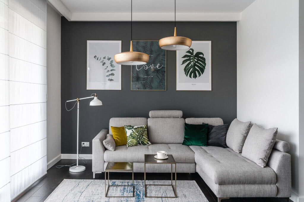 Выбирая серую гостиную , нужно помнить, что выбор правильного оттенка серого имеет первостепенное значение. Этому решению должен предшествовать разбор помещения. Маленькая гостиная и серый цвет в слишком темном оттенке могут создать эффект мрачной комнаты и оптически уменьшить ее. В этом случае нужно получить хорошее искусственное освещение. Дополнительно сочетайте серые со светлой основой — белая стена и серый отлично смотрятся вместе, а квартира оптически увеличивается.