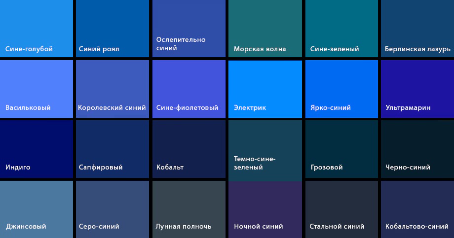 берлинская лазурь – приглушенный тон, уходящий в сочный серый;