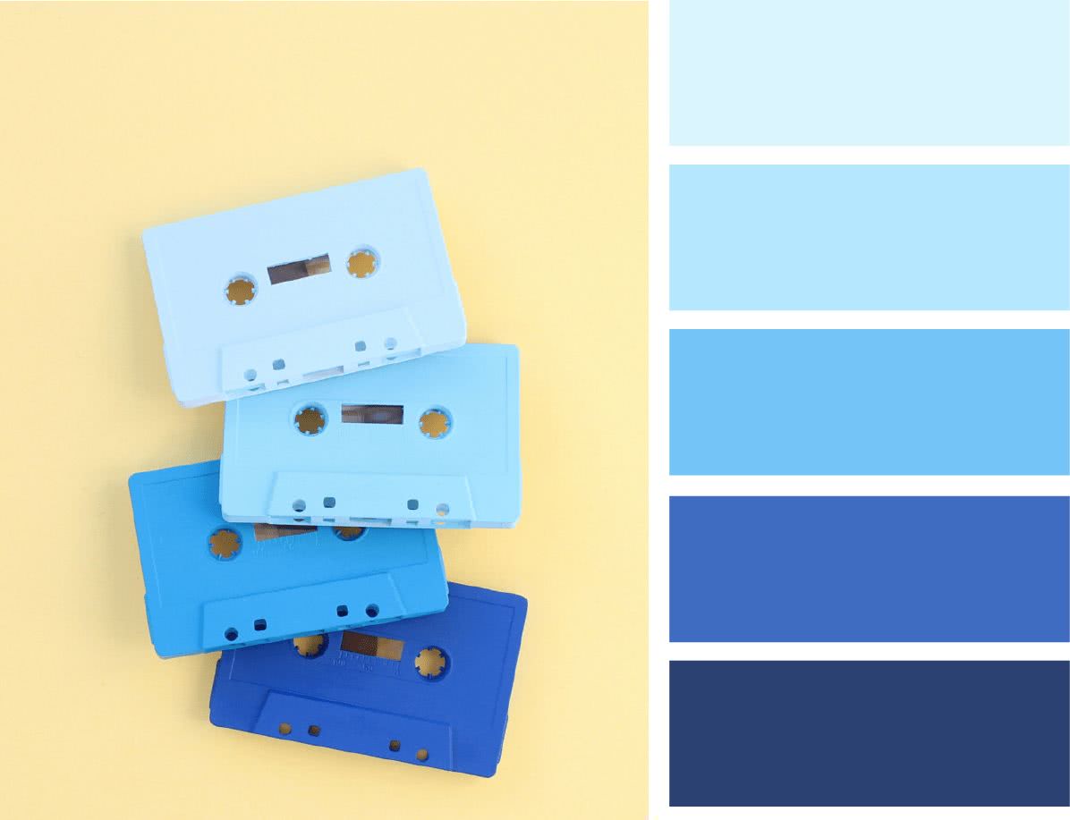 - используйте синеву преимущественно в качестве дополнительного или акцентного цветов;