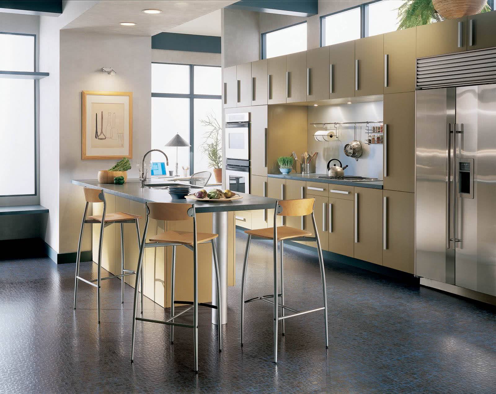 - в кухне (покрытие, имитирующее плитку, идеально впишется в интерьер современной кухни, его нужно сочетать с металлизированными деталями, например, ручками на кухонном гарнитуре);