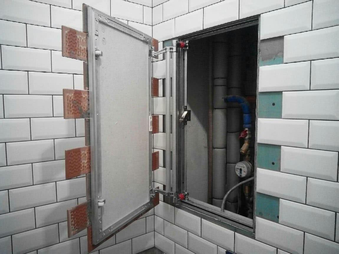 Чтобы без проблем осматривать и ремонтировать сантехнические приборы, трубопроводы, заменять счетчики, оставляют ревизионные ниши. Их закрывают специальными люками