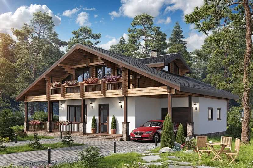 Современный проект альпийского шале с гаражомИсточник tmk-dom.ru