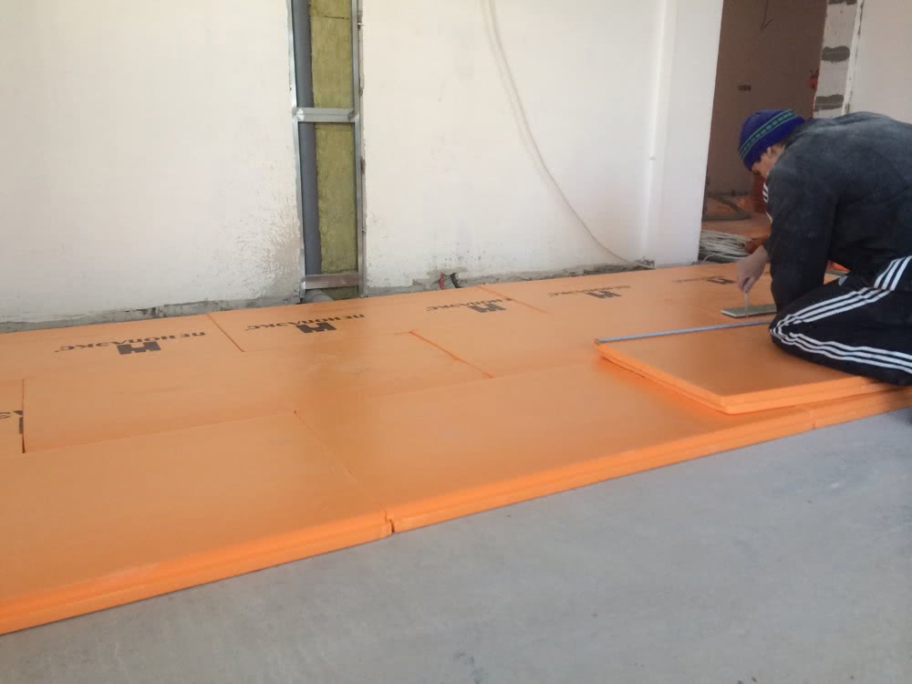 Тёплый пол с утепленным основанием делается в следующей последовательности: