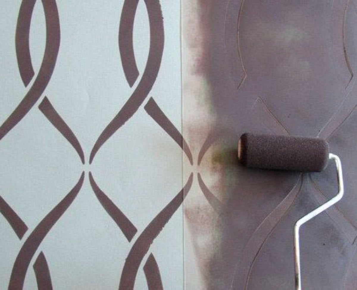 Шаблоны для покраски стен подходят не только для стеновой отделки. Ими можно создать рисунок на стеклянной, пластиковой поверхности и обойных полотнах. Но работать с рельефным основанием будет практически невозможно.