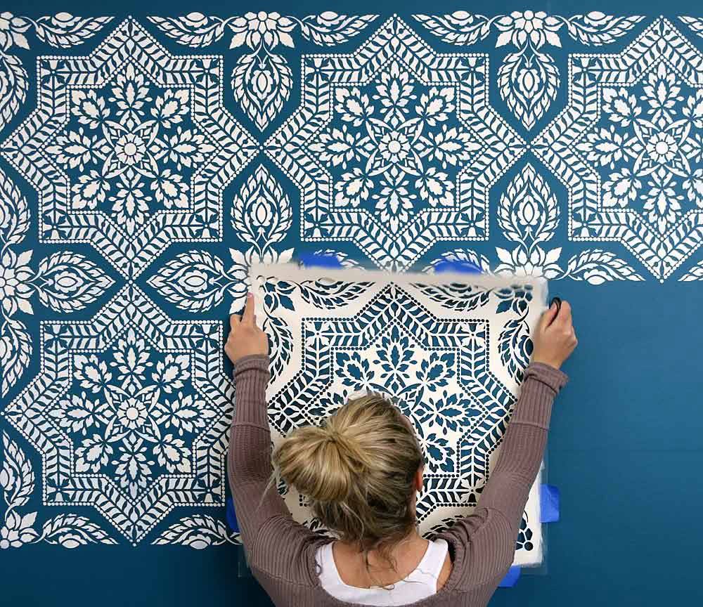 Для использования трафаретов (шаблонов) для декора помещения, выполненных своими руками, не потребуется особых навыков или специальных инструментов.