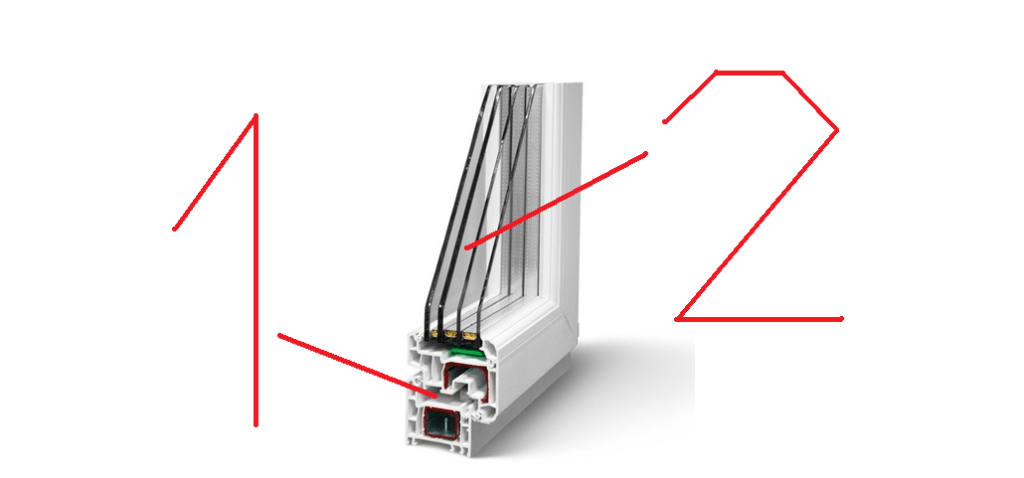 1 – это камеры профиля, тут их пять. 2 – камеры стеклопакета, их три. Это то окно, которое считается уже «танковым»