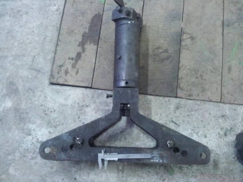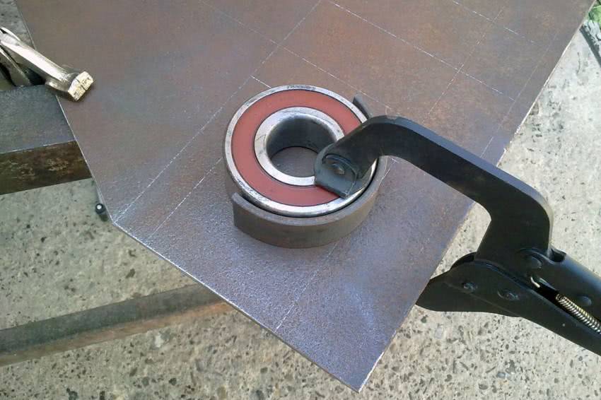 К основе собранной детали приварите трубку, выполняющую функцию ручки. Планку трубной опоры приварите к основе всего изделия. Между планкой и главным болтом должно быть расстояние равное радиусу основного ролика (который имеет больший размер по вашему чертежу) с добавлением 12,7 мм.