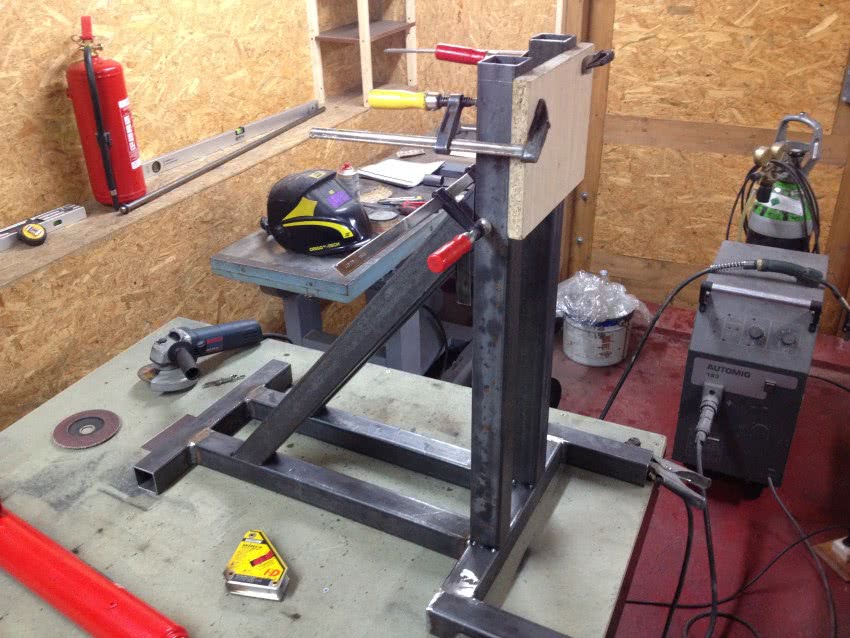 Предварительно следует начертить схему, по которой будет собираться установка. Ниже приведено фото готовой установки, по образцу которой можно сделать трубогиб.
