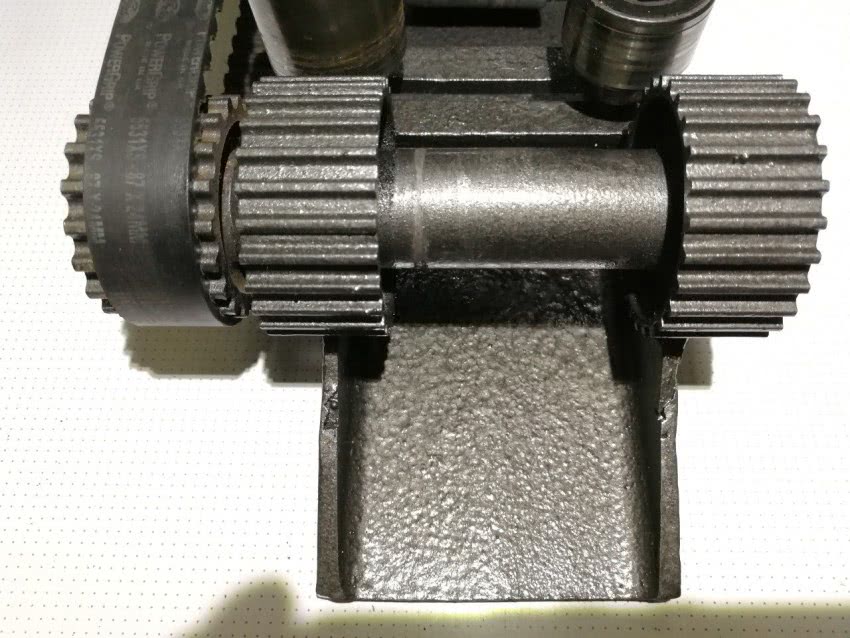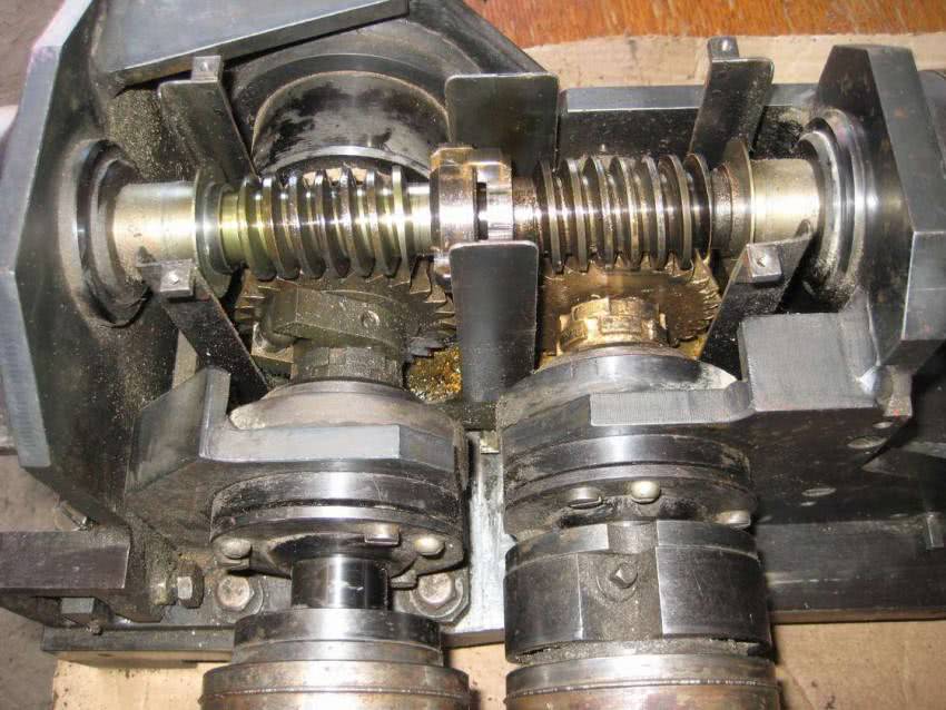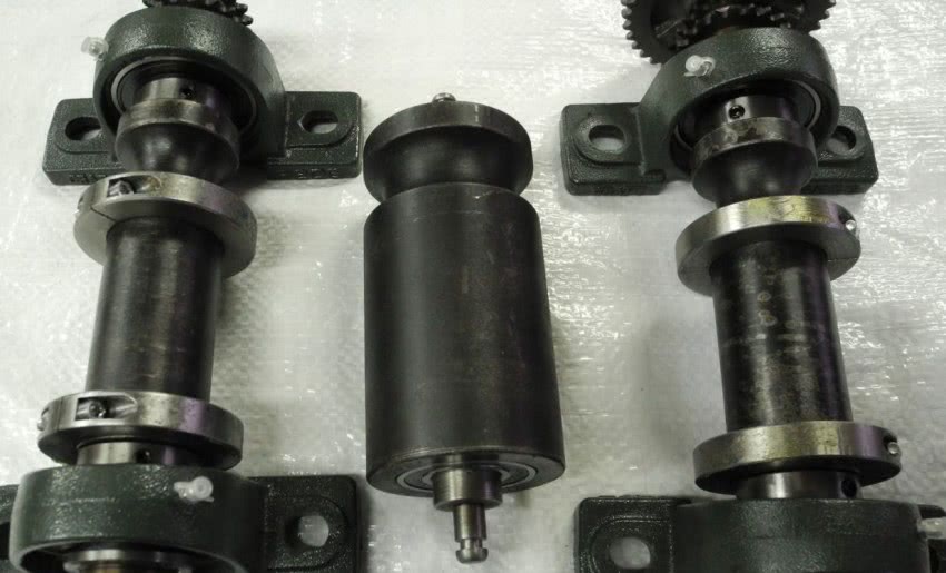 С вращением одновременно двух роликов, конструкция становится сложнее за счет передачи вращения между ними.