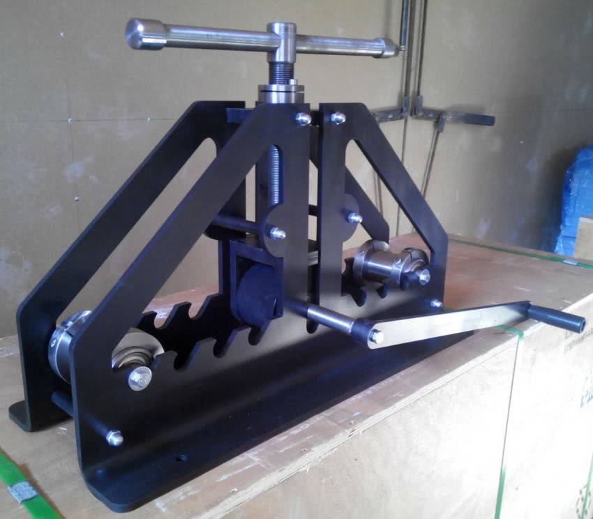 Проще сделать конструкцию трубогиба с прокруткой одного ролика, но у него возможности меньше.