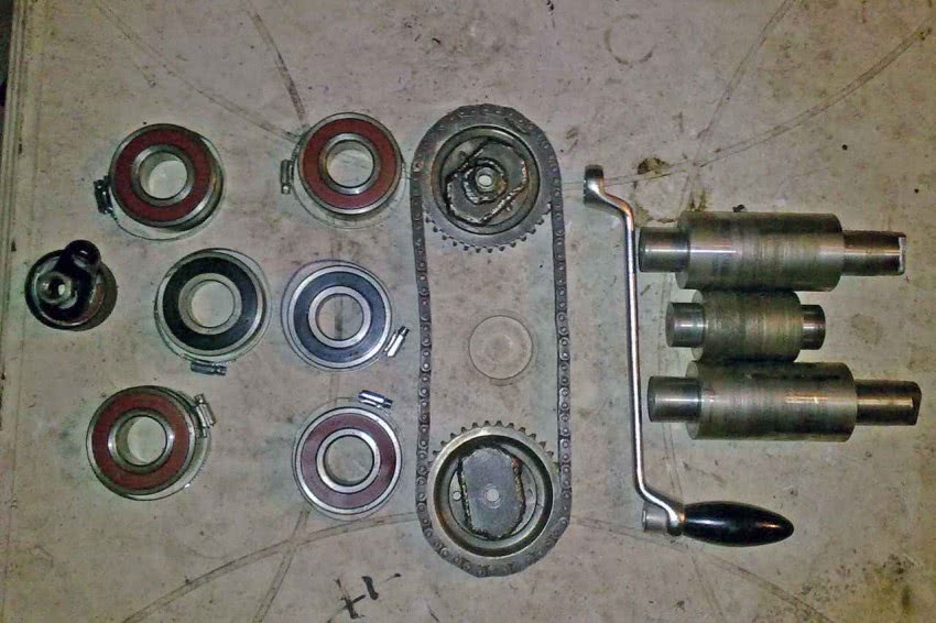 - самая трудная часть сборки – это подбор вальцов необходимого размера, чтобы они плотно прижимались к трубе;