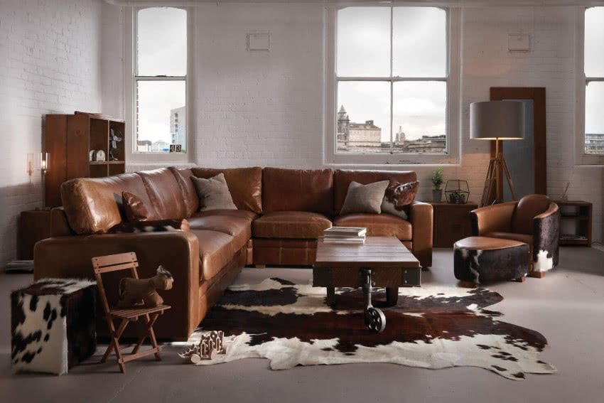 Кожаный диван подойдет к современному интерьеру.