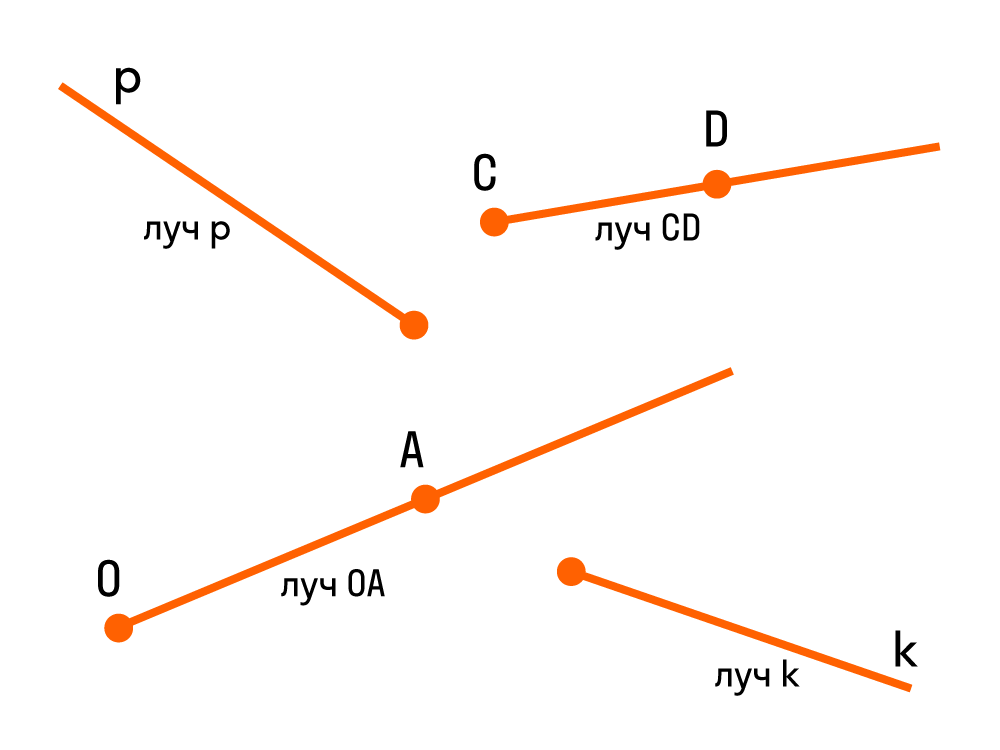Луч — прямая линия, у которой есть начало, но нет конца, и продолжается она только в одну сторону.