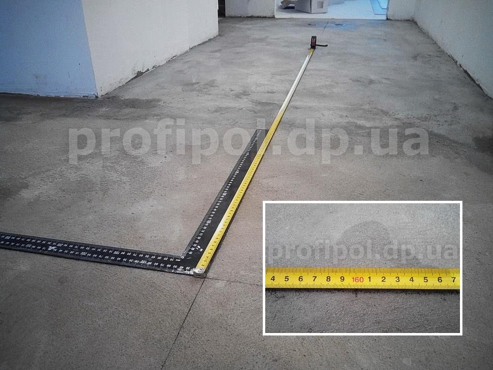 Если расстояние (гипотенуза треугольника) меньше, то у Вас вместо прямого угла между стенами острый. Для того, чтобы получить прямой угол, отступите от отметки на линии вдоль стены, принятой за основу, несколько сантиметров. Нарисуйте на полу небольшие дуги по принципу, изложенному в предыдущем пункте. Полученную линию можно перенести ближе к стене. Главное условие — отметки выпирающих участков стены должны остаться между новой линией и стеной.