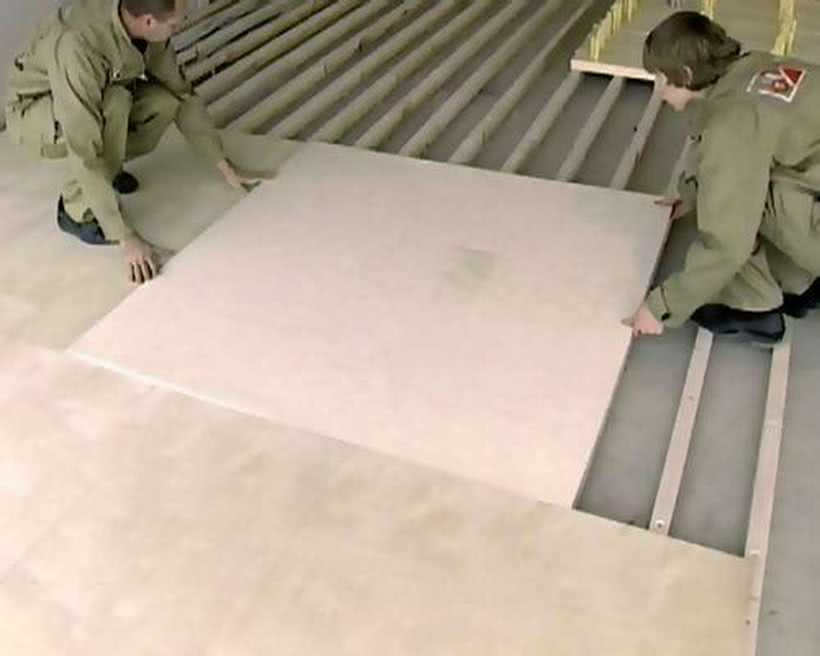 Посмотрите, как проводится укладка фанеры на бетонный пол — видео наглядно демонстрирует процесс.