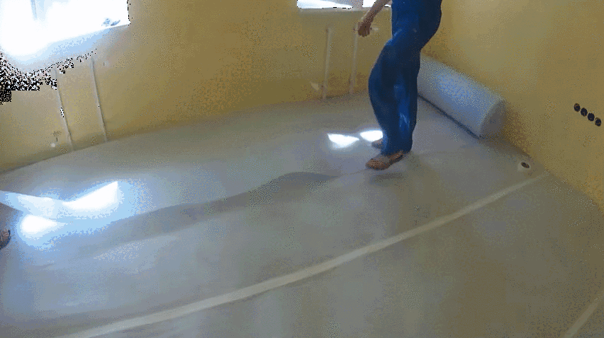 - В случае неровного снования выровняйте его путем заливки самовыравнивающейся стяжки. Предварительно поверхность необходимо загрунтовать.